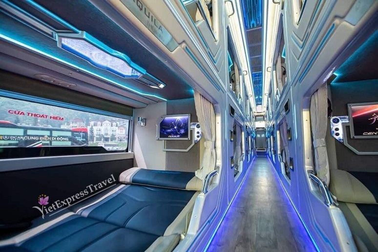 The cabins are all equipped by windows with glass frames design that allow pasengers take a spacious view of the scenery. Each cabin has separate curtains and partitions to create private space and comfort for travelers during the journey.